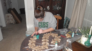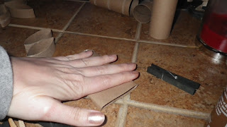 OK- So my mission is to make the letter S out of toilet paper rolls. I really liked the flower designs I have seen on some of the toilet paper roll wreaths on other blogs and decided to use that design to construct my letter! Although I am doing an S, I think any letter would be doable. ** You may find, as I did, that you will need to use some strategery (technical term alert) when hanging your letter-- I used thumbtacks to hang my S and shape it the way I wanted- but more on that later.