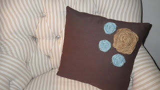 I added several rosettes to some pillow covers. Want my fool proof method of making pillow covers? A step by step guide: