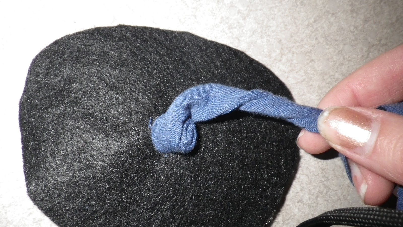 When you get to your desired size, flip it over and glue the tail of the fabric onto the back.
